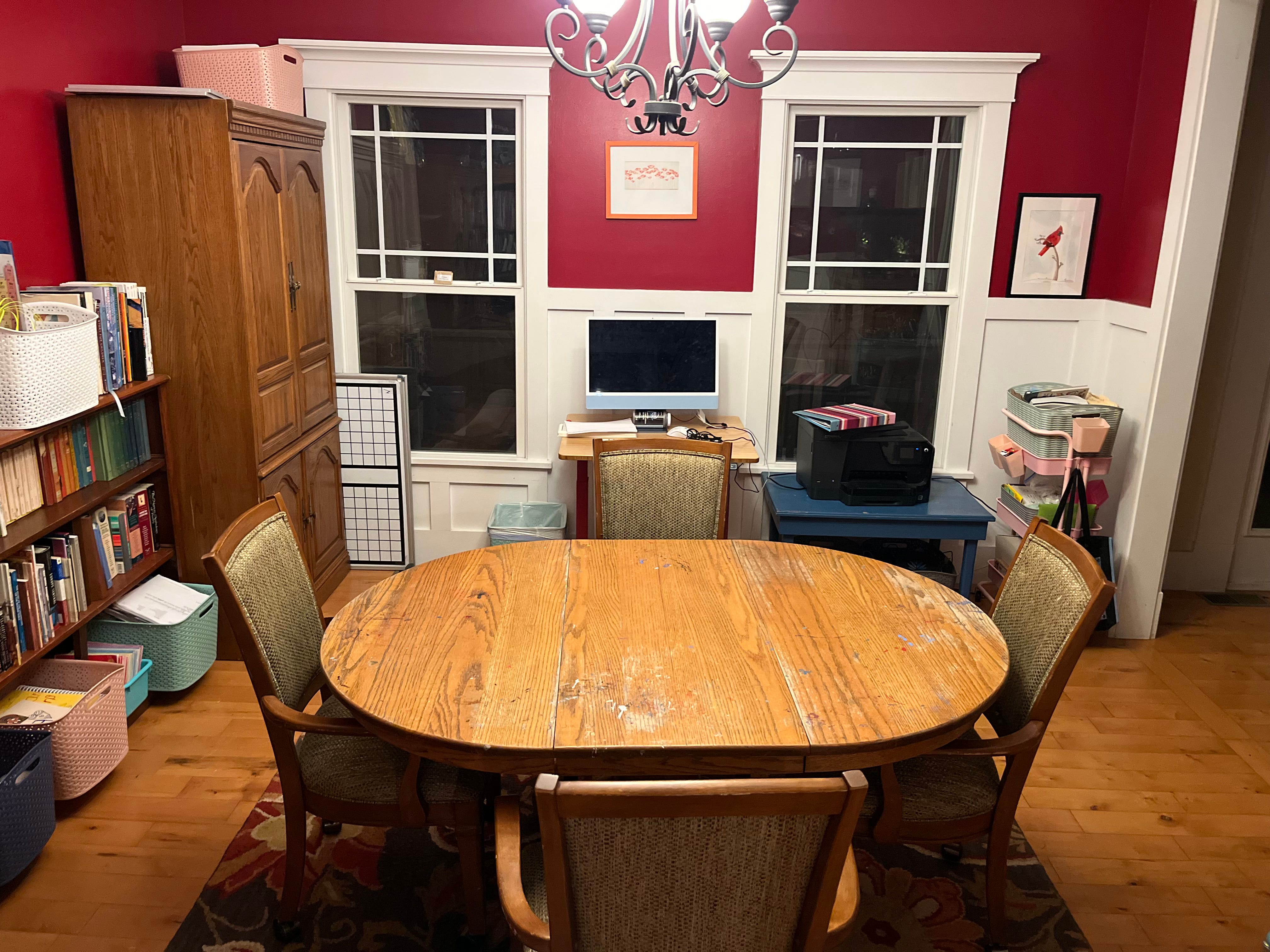 When is the right time to begin posting about homeschooling? August. Run a series on our beautifully laid out materials, strewn lovingly, full of pictures of my children all sitting around our antique, second generation homeschool table. Which wobbles badly. And does not provide enough leg room for my giraffe children. Obviously.